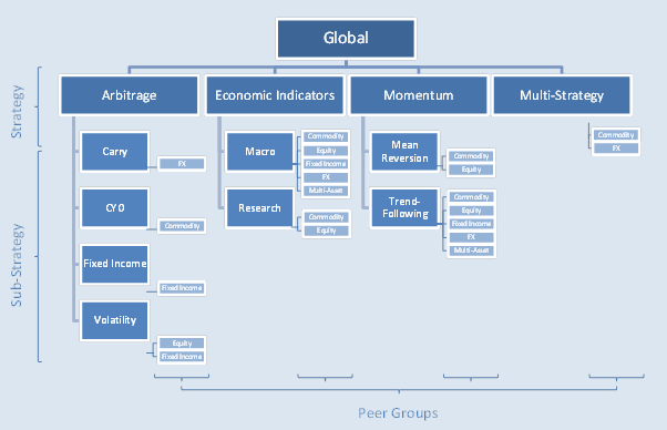 - Peer Group Indices: equally weighted portfolios of the constituent Trading Strategy Indices.